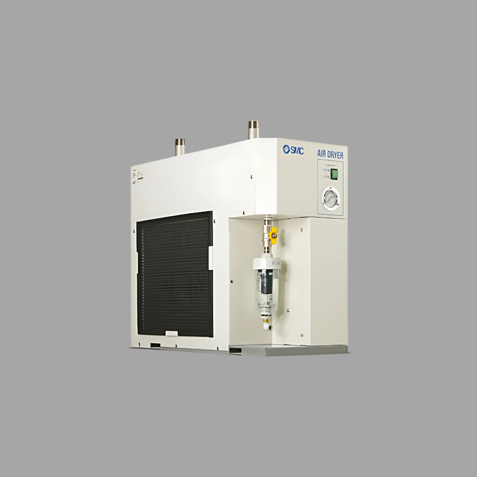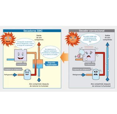 Dispositivo que utiliza una membrana semipermeable para separar el vapor de agua del aire comprimido, proporcionando un aire seco sin necesidad de electricidad ni refrigerantes. Es ideal para aplicaciones donde se requiere un diseño compacto, bajo mantenimiento y un suministro continuo de aire seco, como en industrias médicas, electrónicas o alimentarias.